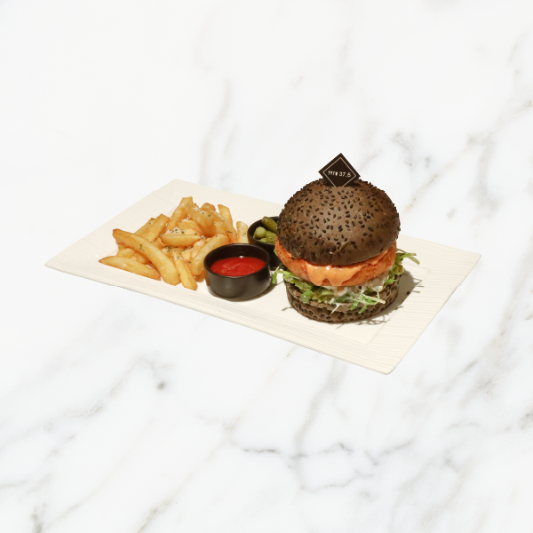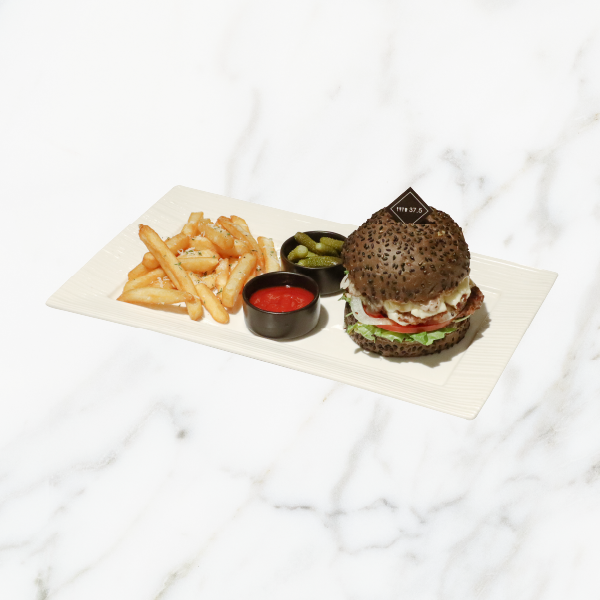 육즙 가득한 비프 패티와 진한 머쉬룸 소스, 신선한 야채를 먹물 번 사이에 담아낸 시그니처 블랙버거